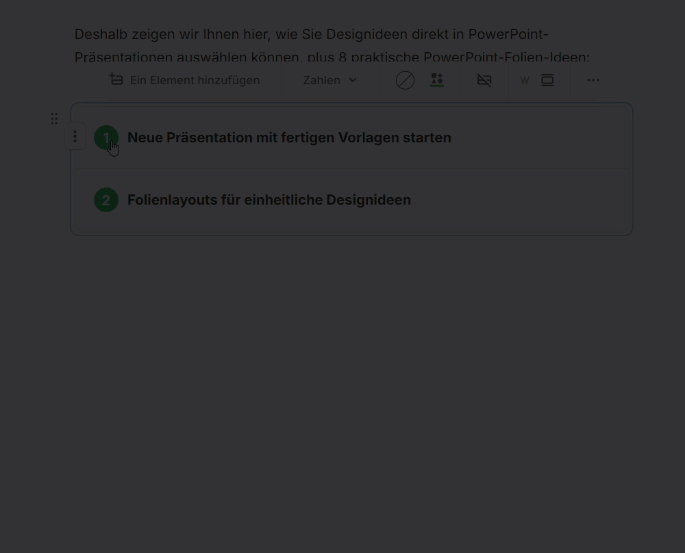 Alternativ können Sie den Inhalt direkt ins Akkordeon ziehen und ablegen.
