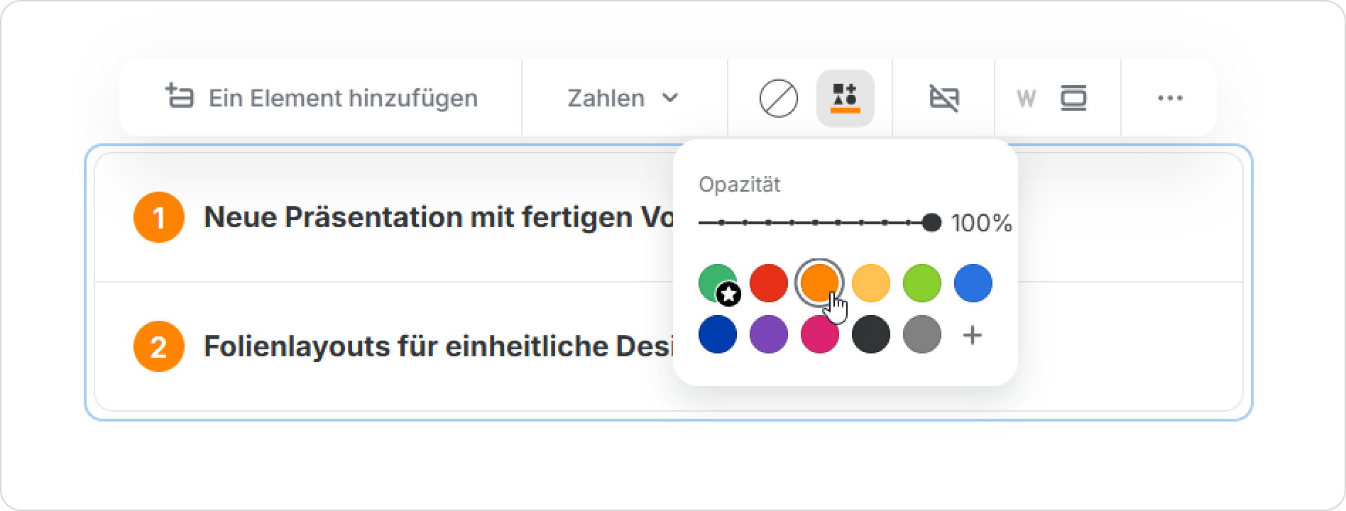 - Sie können weitere Elemente hinzufügen, deren Reihenfolge ändern, bestehende Elemente duplizieren oder nicht benötigte Elemente löschen.