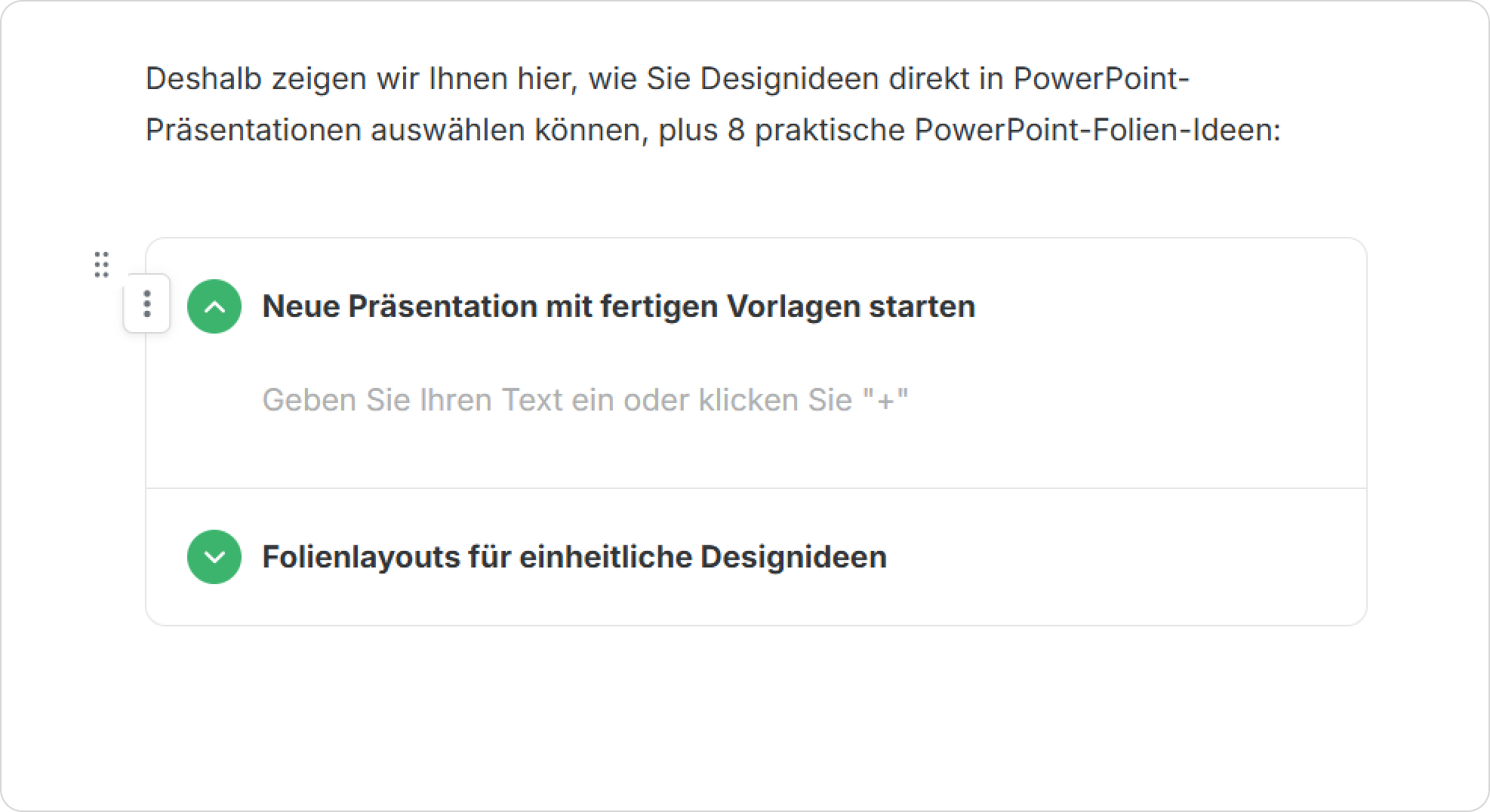 Um Inhalte zum Akkordeon hinzuzufügen, befolgen Sie diese Schritte:
