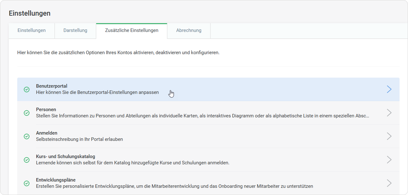 Klicken Sie auf der Registerkarte Zusätzliche Einstellungen auf Benutzerportal, um die persönlichen Konten der Benutzer einzurichten.