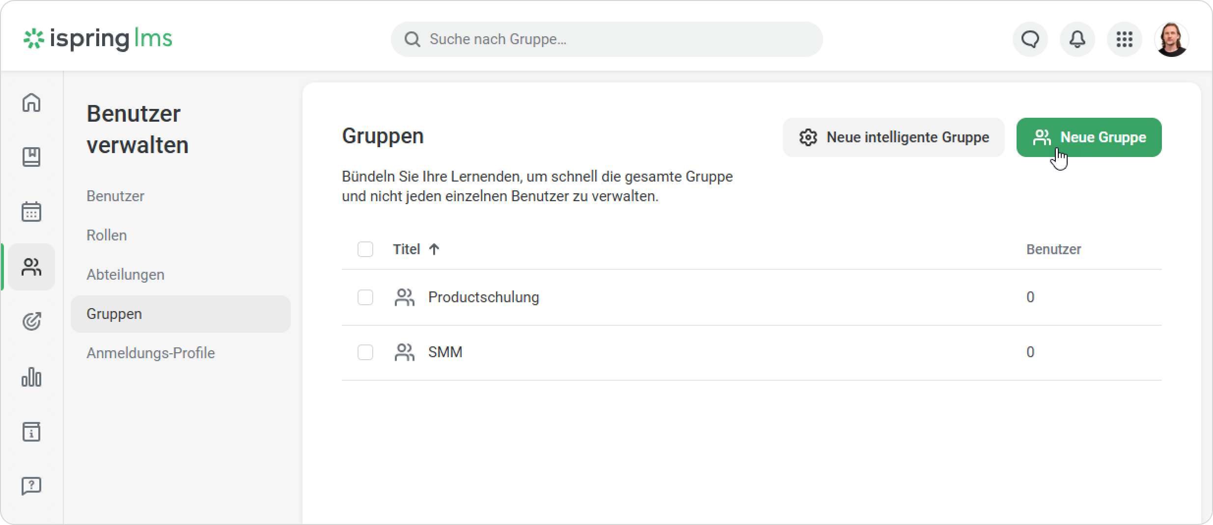 - Nachdem Ihre Gruppe hinzugefügt wurde, finden Sie sie auf der Registerkarte Gruppen im Abschnitt Benutzer.