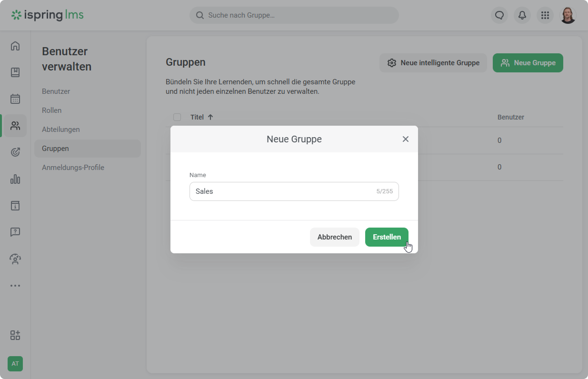 - Geben Sie den Gruppentitel ein und klicken Sie auf Erstellen.