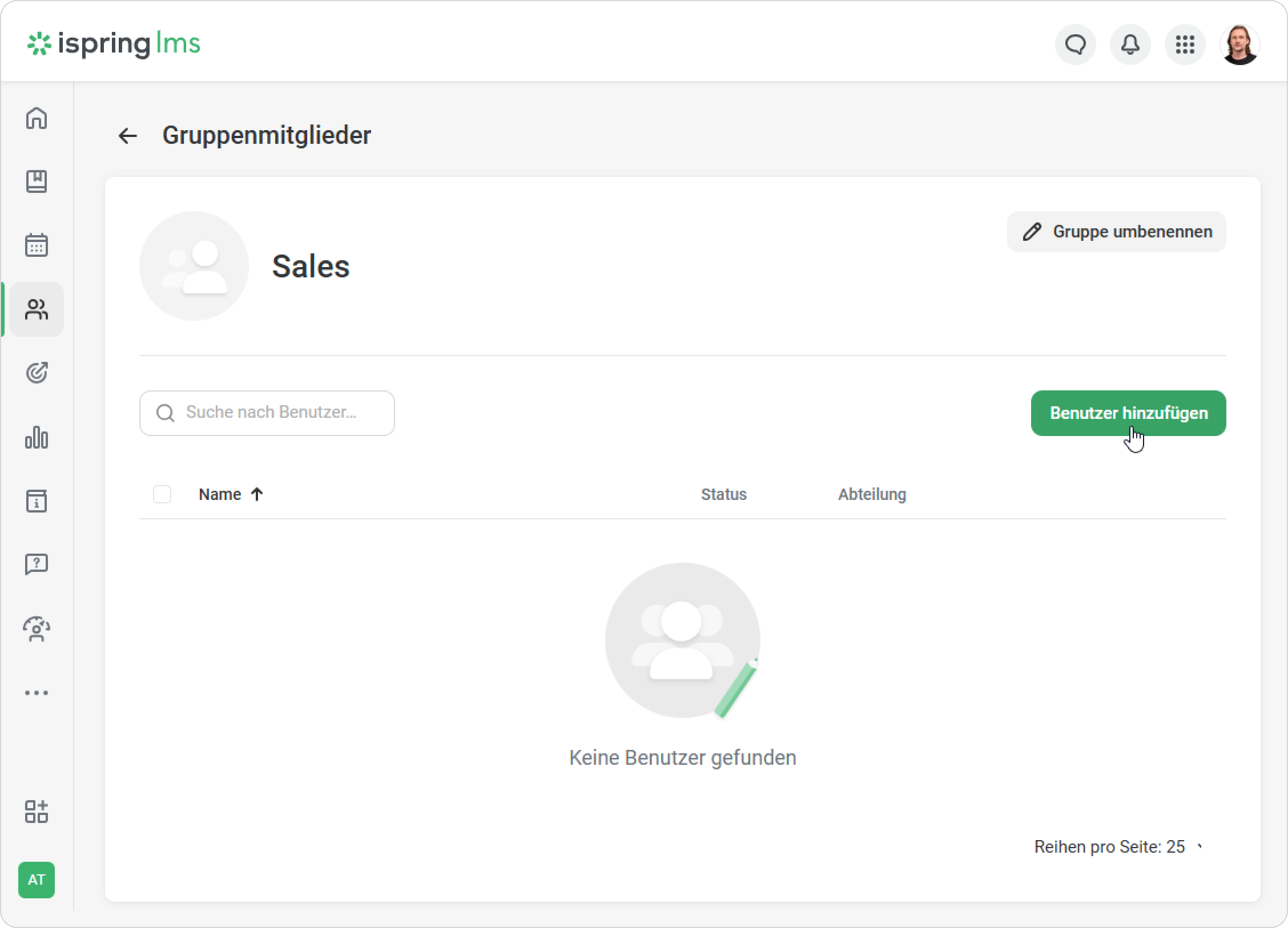 - Benutzer zur Gruppe hinzufügen. Klicken Sie dazu auf den Gruppentitel und auf der Seite Gruppenmitglieder auf Benutzer hinzufügen.