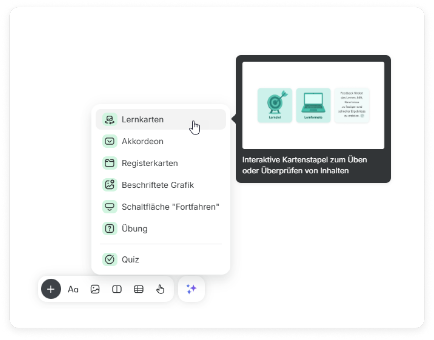 1. In der Werkzeugleiste navigieren Sie zu Interaktionen und wählen Lernkarten aus.