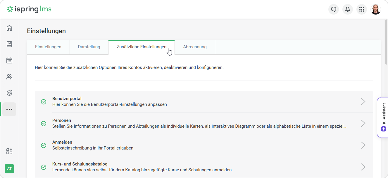 - Gehen Sie zu Einstellungen > Zusätzliche Einstellungen.