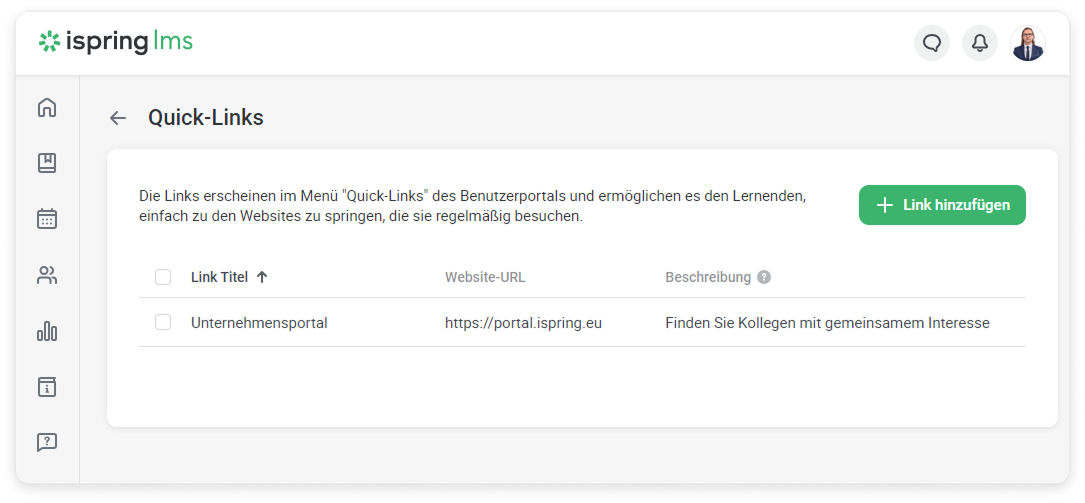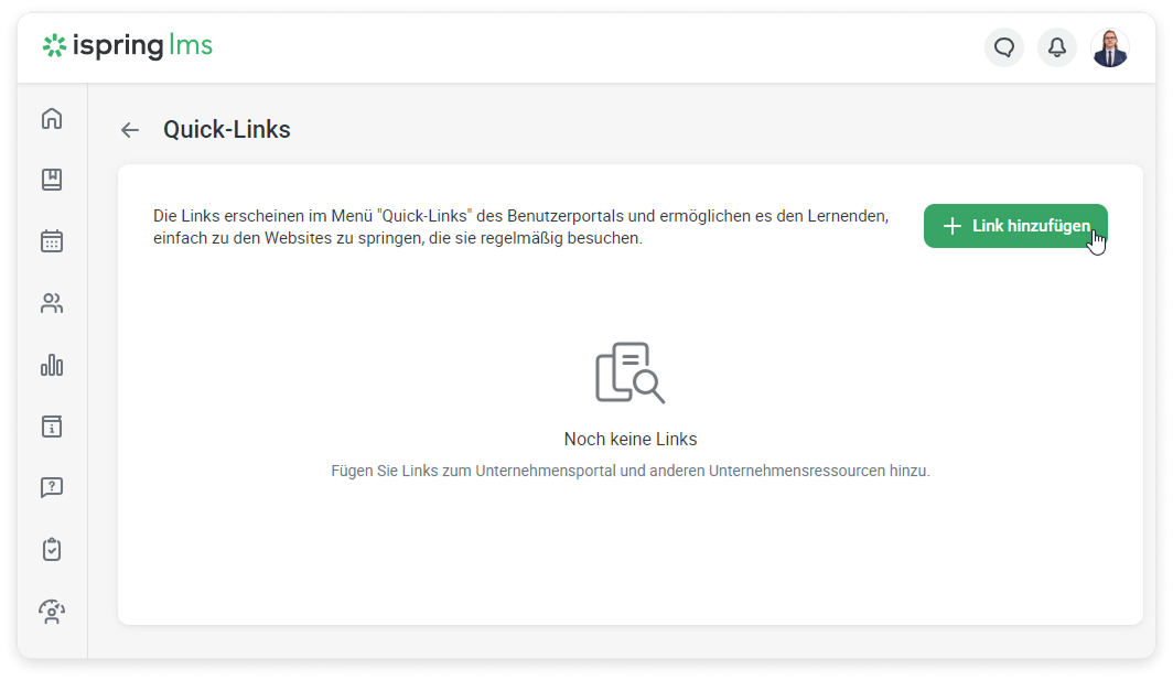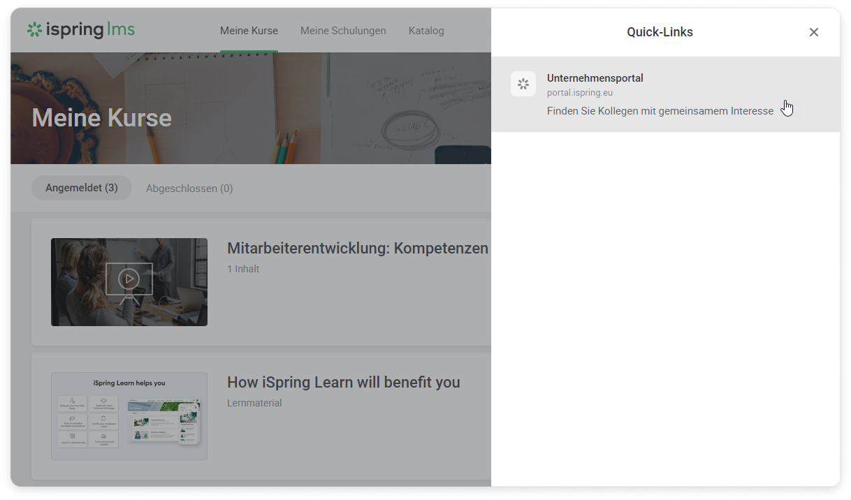 Lernende können vom Abschnitt Quick-Links des Benutzerportals schnell auf Unternehmens-Apps und Webseiten zugreifen.
