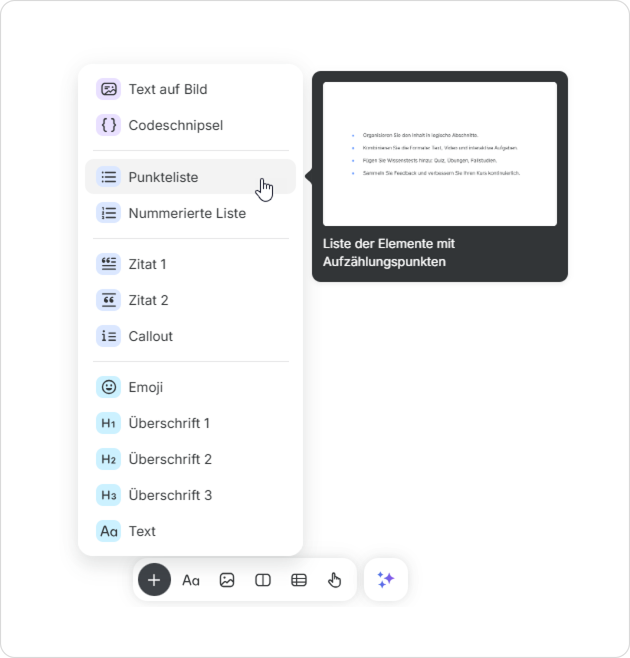 1. In der Werkzeugleiste navigieren Sie zu Text und wählen Punkteliste aus.