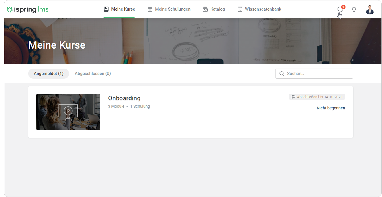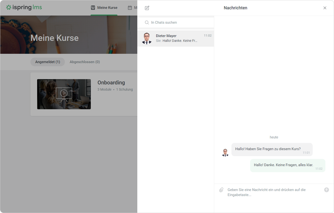 Mit der Option für private Nachrichten können Benutzer und Administratoren von iSpring LMS Fragen zu einem Kurs stellen und beantworten oder ihre Eindrücke teilen.