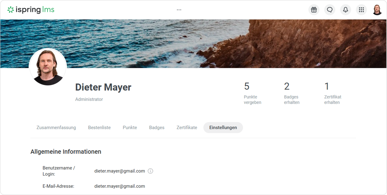 Der Kontoinhaber kann Logins im Abschnitt Benutzer ändern. Um die E-Mail-Adresse des Kontoinhabers zu ändern, wenden Sie sich an das iSpring Support-Team.