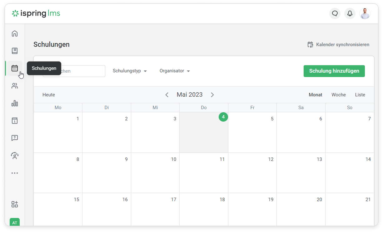 In iSpring LMS können Sie Offline-Meetings und Webinare abhalten, Benutzer für diese Veranstaltungen anmelden und die Ergebnisse mit Berichten kontrollieren.