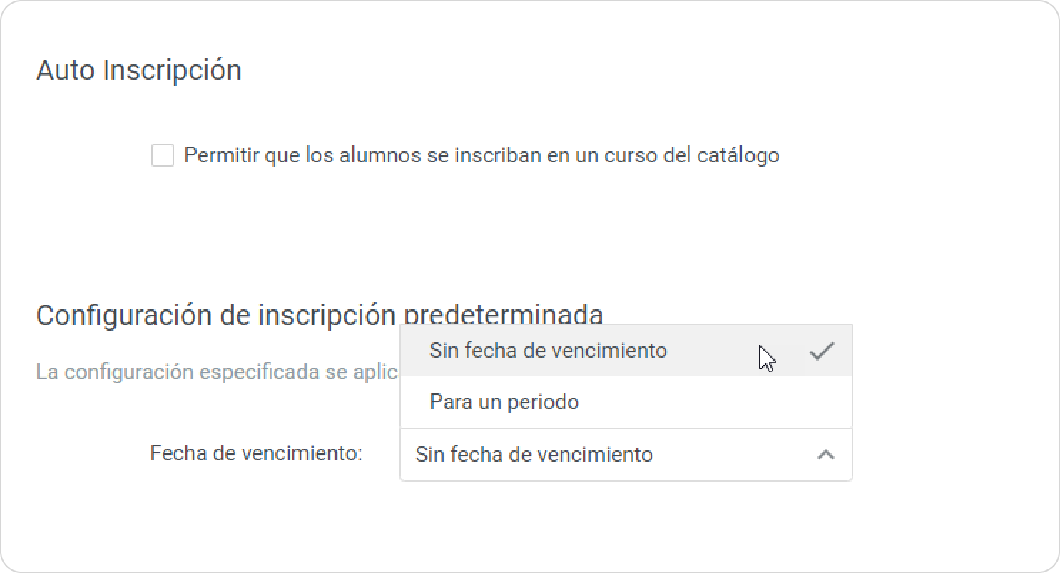 Sin fecha de vencimiento | Los usuarios podrán ver el curso sin limitaciones de tiempo. |