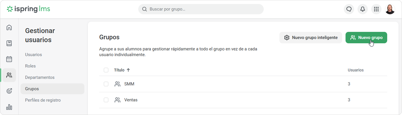1. Abra la sección Usuarios, vaya a la pestaña Grupos y haga clic en el botón Nuevo grupo.