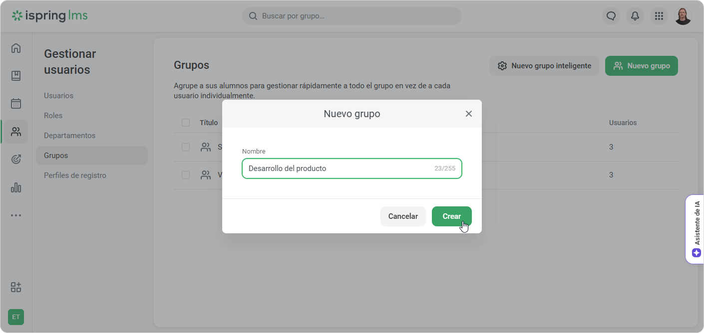 2. Escriba el título del grupo y haga clic en Crear.