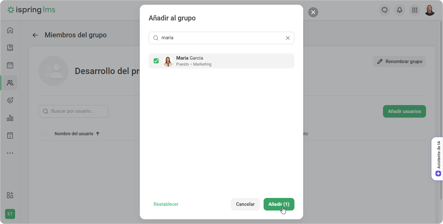 6. Haga clic en Añadir y los usuarios serán añadidos al grupo.