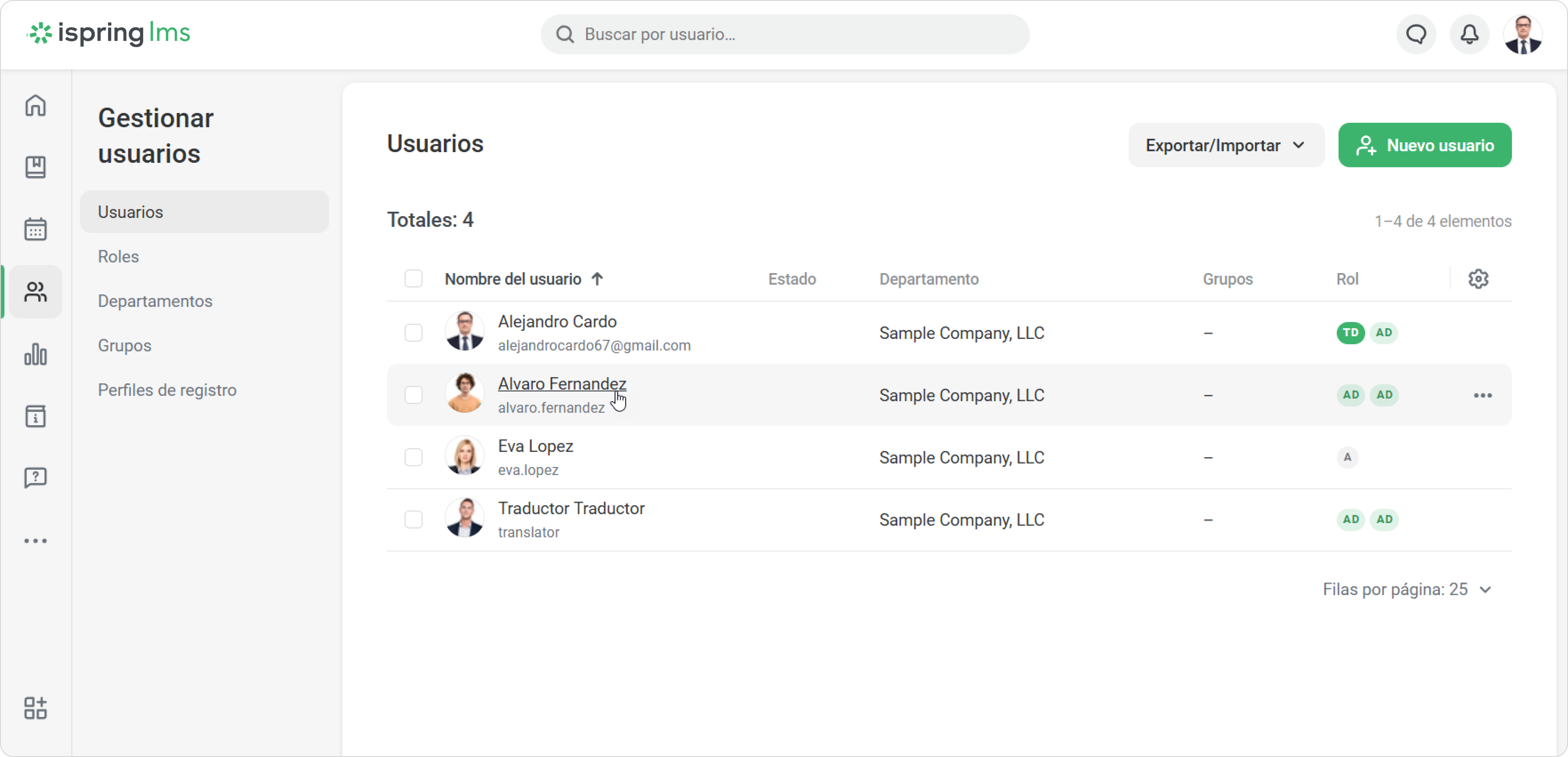 En la página Editar curso, abra la pestaña Inscripciones. Aquí, verá todos los usuarios que están inscritos en el curso.