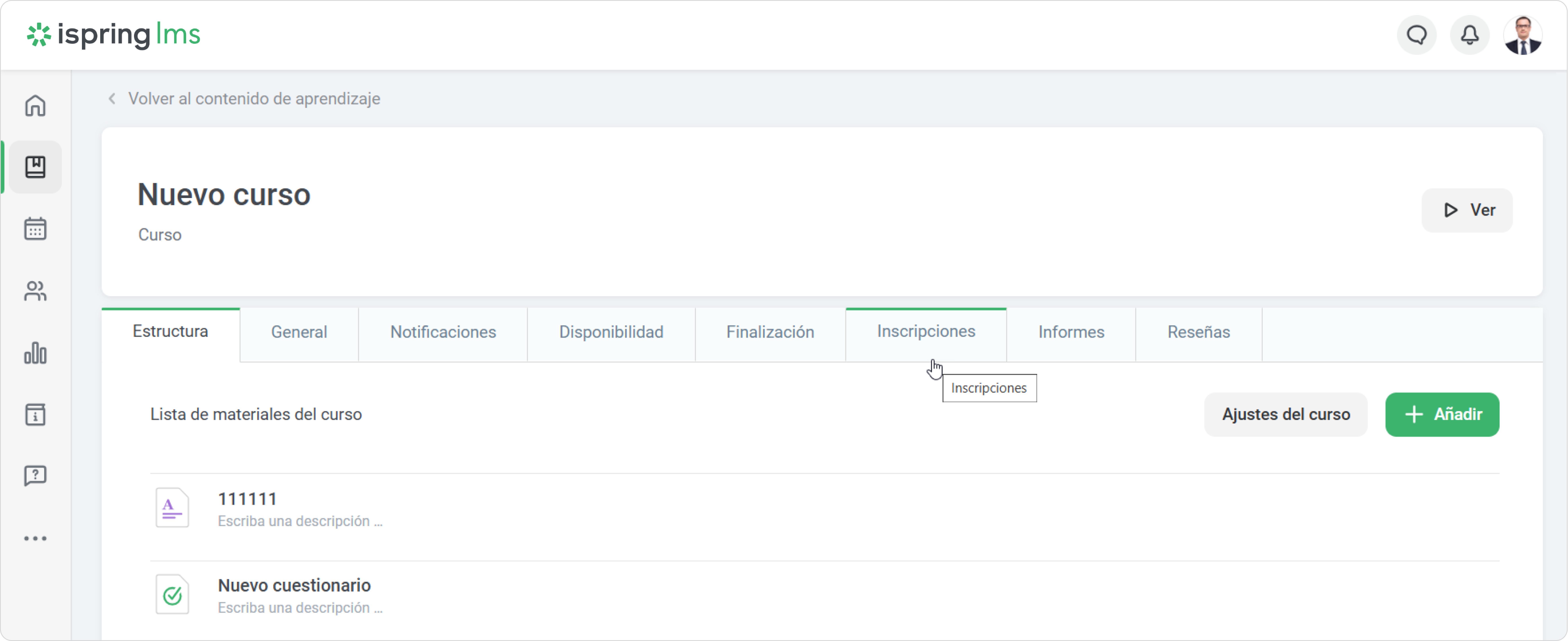 - En la página de Editar curso, abra la pestaña Inscripciones. Aquí verá todos los usuarios que están inscritos en el curso.