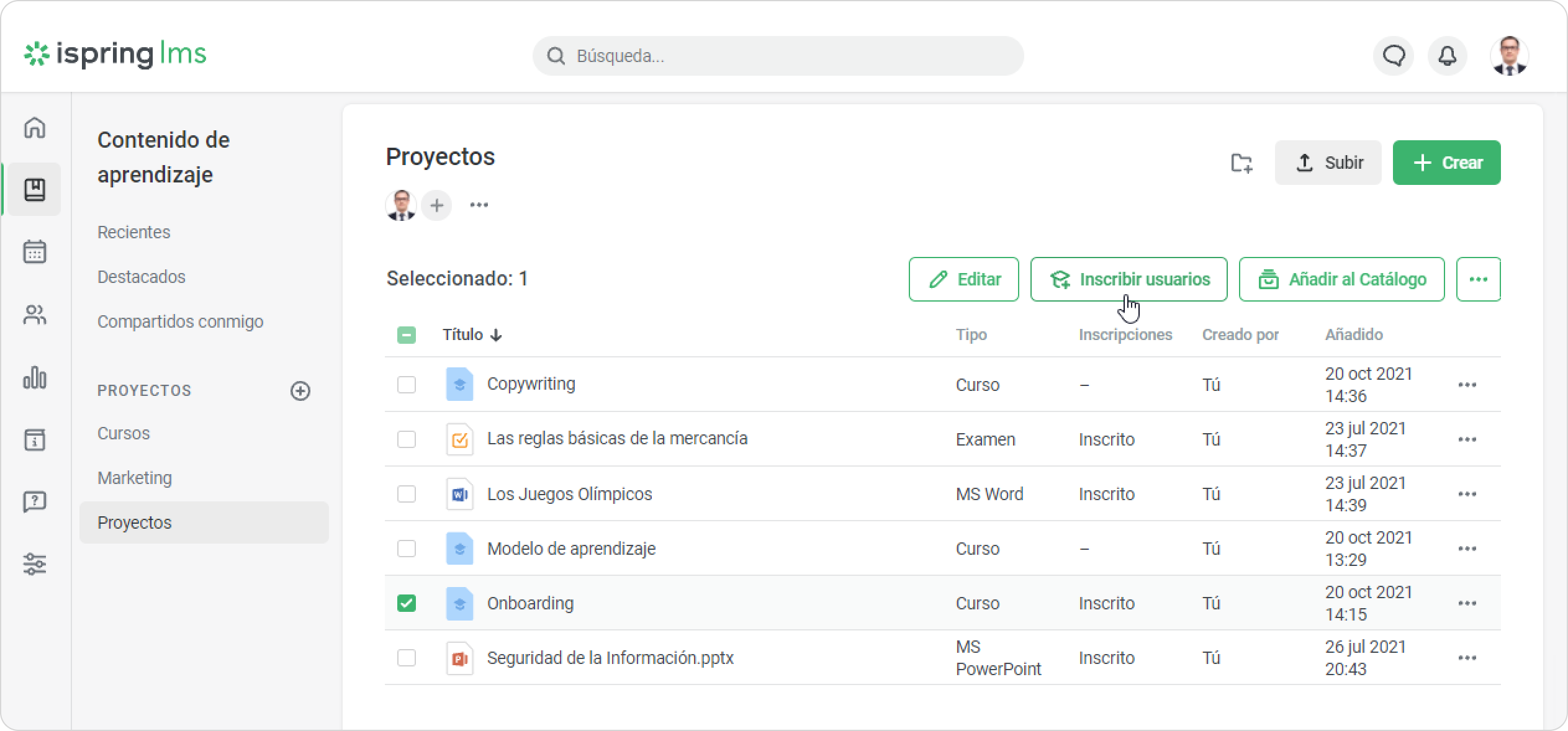 Además, las inscripciones permiten recopilar distintos tipos de contenido e inscribir a los alumnos en estos.