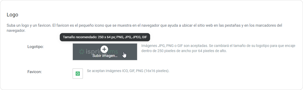 El tamaño de la imagen no debe exceder los 100 MB. Las dimensiones recomendadas son 250 × 64 píxeles.