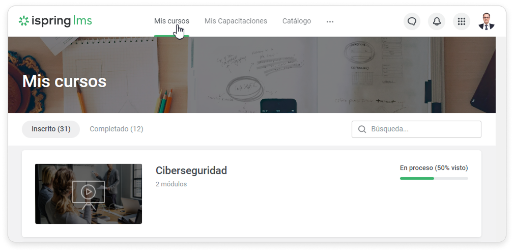 En esta sección, los usuarios pueden buscar cursos, navegar por estos y verlos.