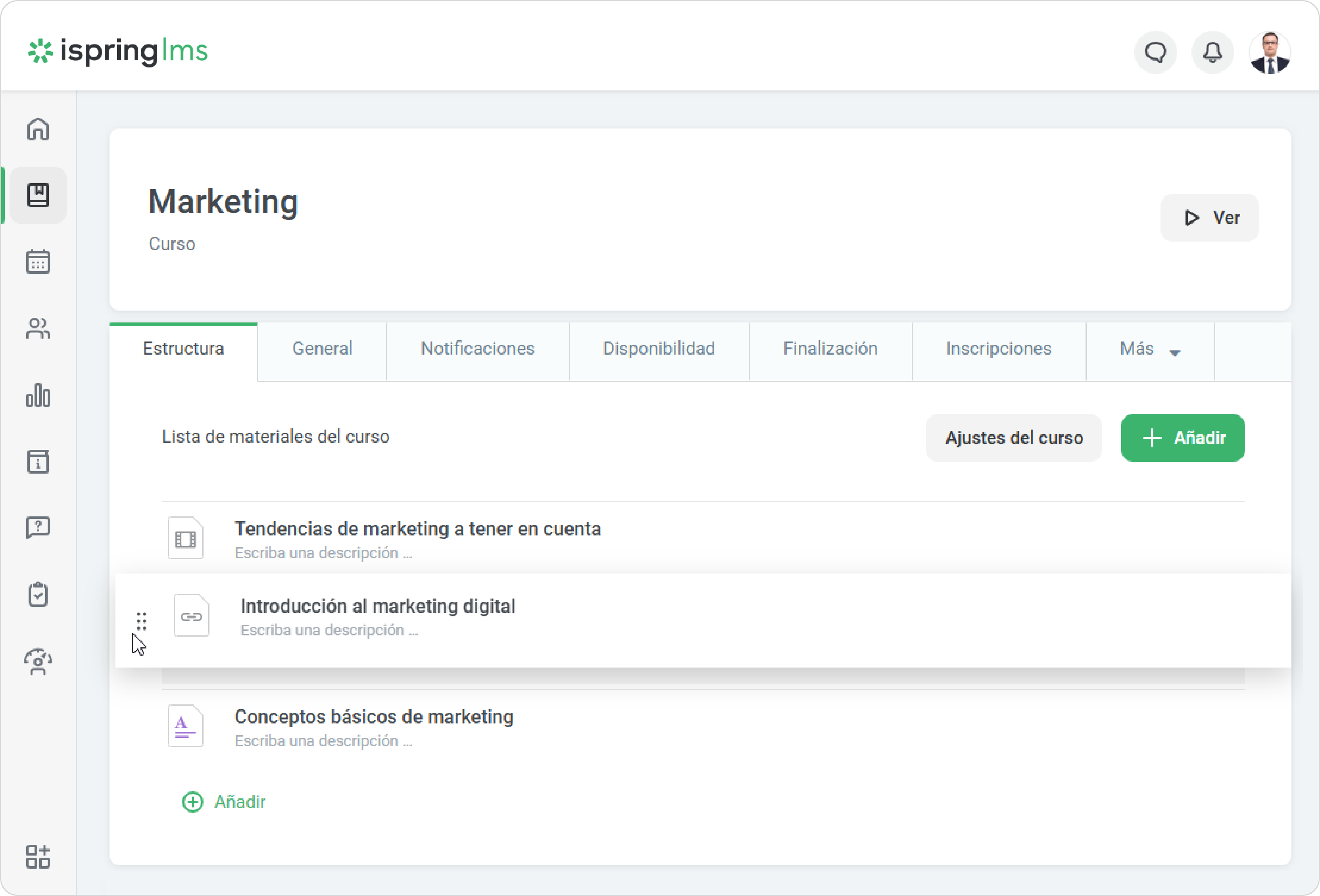 Cambie el orden en que los alumnos estudiarán los elementos de contenido.