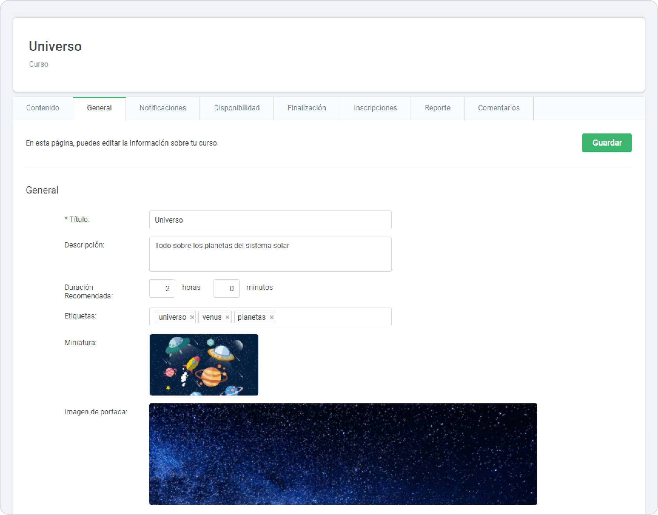 - editar el título y la descripción del curso