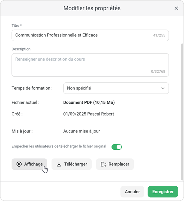 3. Si le module est inclus dans un cours qui est attribué à l'administrateur, le fait que l'administrateur visualise le module sera pris en compte dans les rapports.