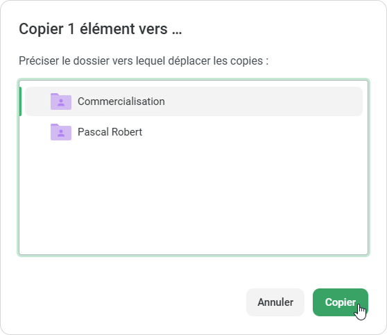 - Si vous copiez un dossier dans lequel des cours sont stockés, les cours seront également copiés.