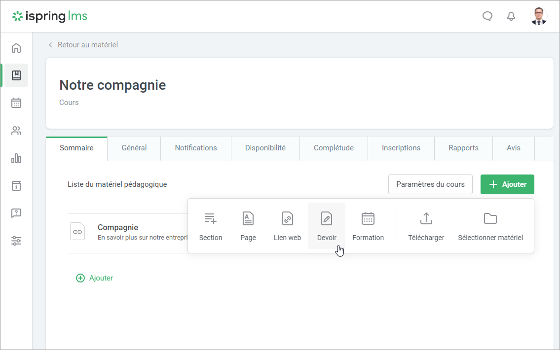 - Ça y est ! Le devoir est ajouté au cours et vous pouvez le gérer comme tout autre élément de contenu.