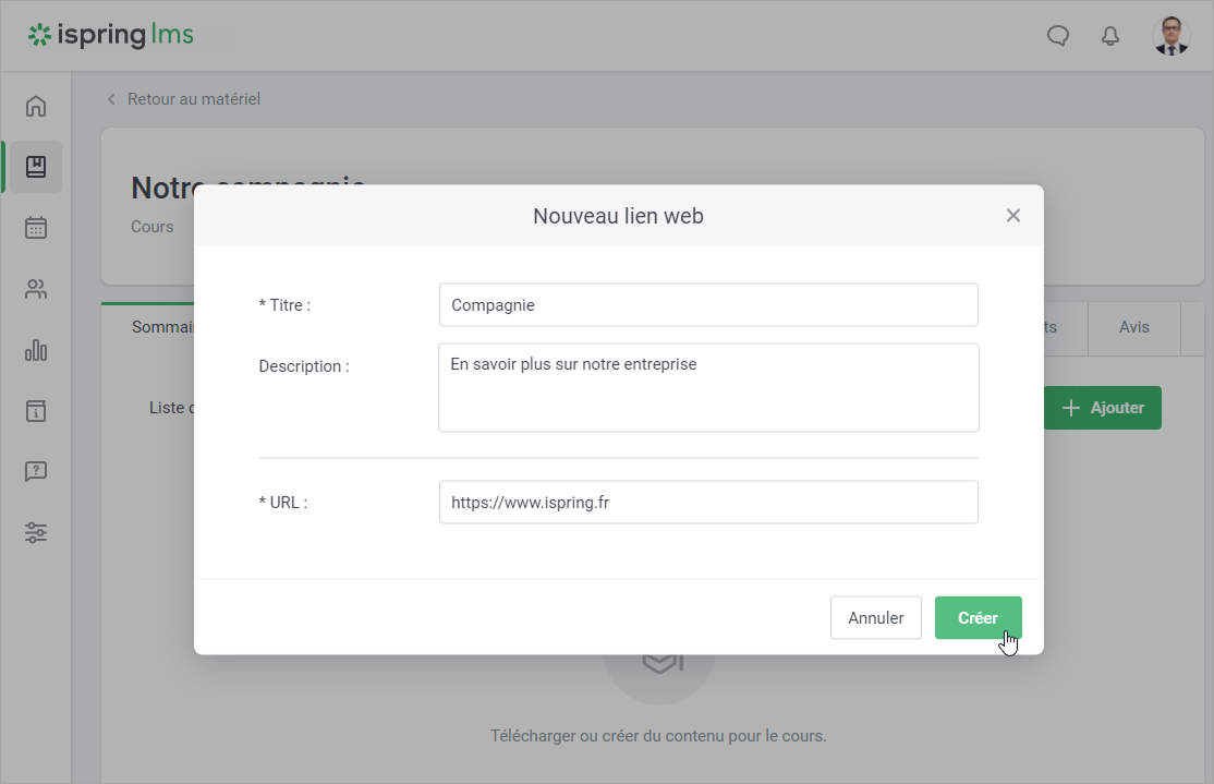Si vous avez un article que vous souhaitez faire lire à vos employés ou une vidéo de formation en ligne que vous recommandez à vos élèves de regarder, vous pouvez les ajouter en tant que liens Web.