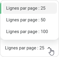 Ou sélectionnez la page nécessaire en dessous du rapport. - Pour faciliter la navigation, sélectionnez combien de lignes seront affichées sur une page.