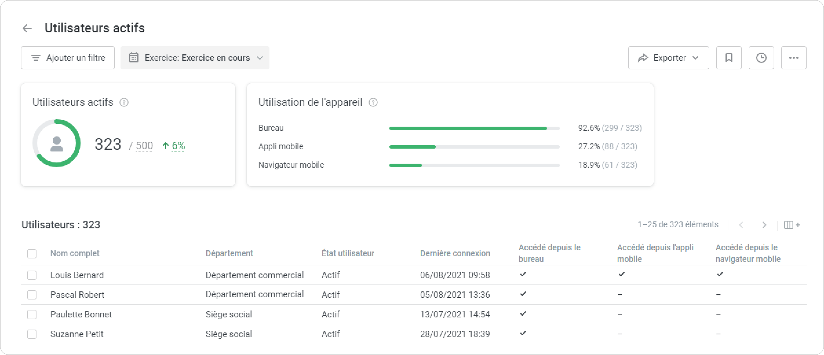 Les utilisateurs actifs sont ceux qui se sont connectés au système au moins une fois pendant la période de facturation.