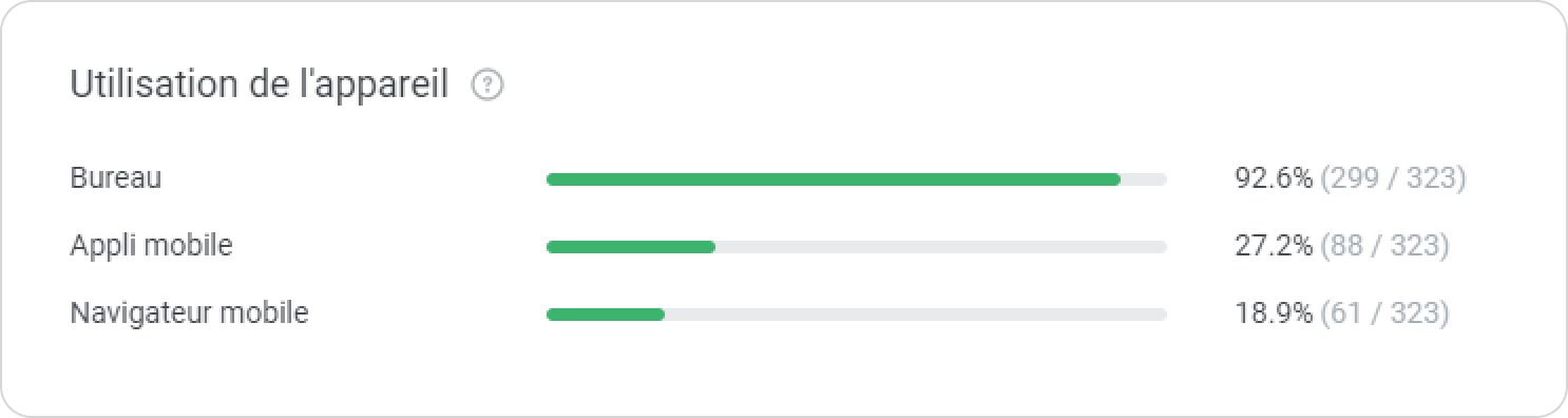 Indique le pourcentage du nombre d'utilisateurs qui se sont connectés en utilisant un ordinateur ou un appareil mobile.