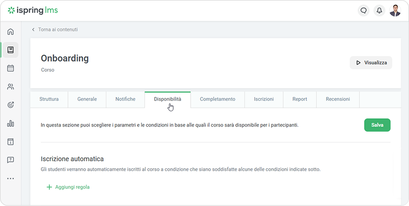 Nessuna data di scadenza | Gli utenti potranno visualizzare il corso senza limitazioni. |