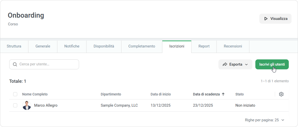 Se vuoi applicare la data di scadenza indicata a tutti i corsi assegnati, fai clic su Applica a tutti.