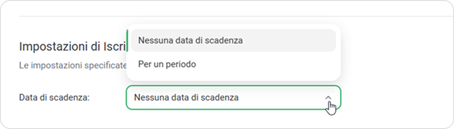 Il secondo modo per impostare la data di scadenza del corso è durante l’iscrizione di uno studente.
