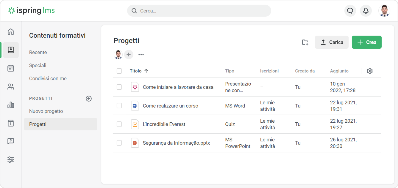 Puoi aggiungere dei materiali formativi al di fuori di un corso e assegnarli agli utenti. Quiz, corsi in formato SCORM e altri contenuti possono essere creati, caricati e assegnati come materiali autonomi.