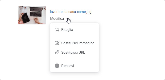 - Aggiungi un’immagine o un video. Puoi caricare un’immagine dal tuo computer o inserire un link a un’immagine. Un video può essere aggiunto tramite un codice di incorporamento.