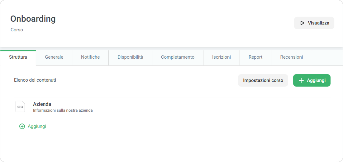 Il link viene aggiunto al corso e puoi gestirlo come qualsiasi altro contenuto incluso nel corso.