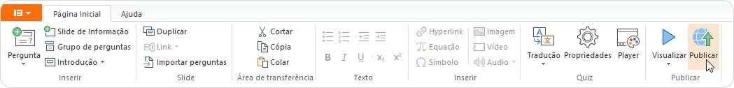 1. Clique em Publicar na barra de ferramentas do iSpring QuizMaker.