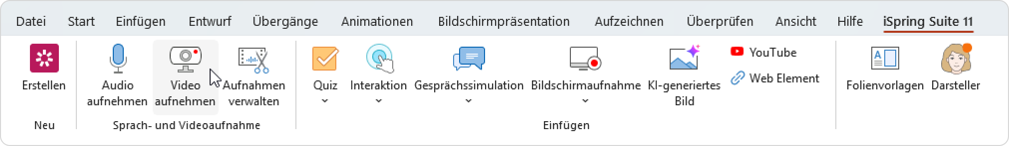 - Klicken Sie in der iSpring Suite-Symbolleiste auf Video aufnehmen.