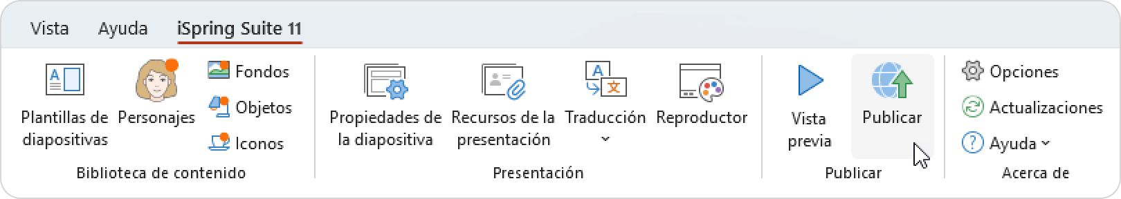 1. Haz clic en Publicar en la barra de herramientas de iSpring Suite.