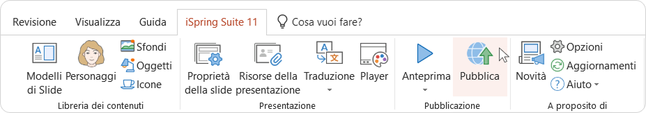 - Fai clic sul pulsante Pubblica nella barra degli strumenti di iSpring Suite.