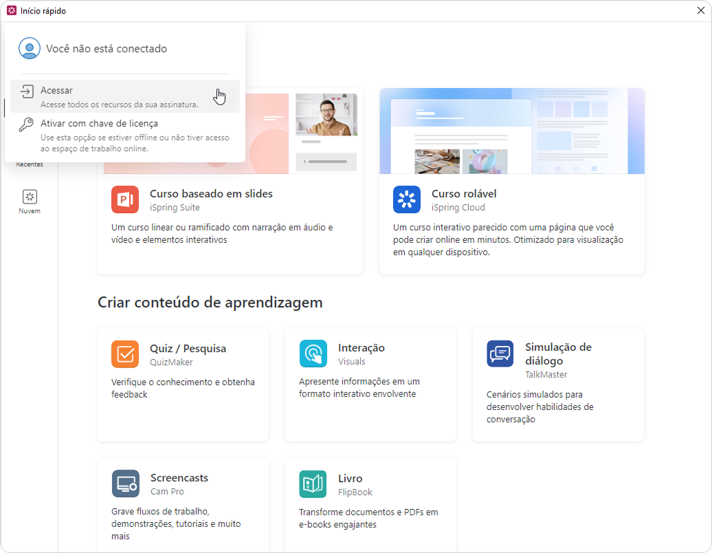 Ative sua licença do iSpring Suite usando sua conta do iSpring Suite.