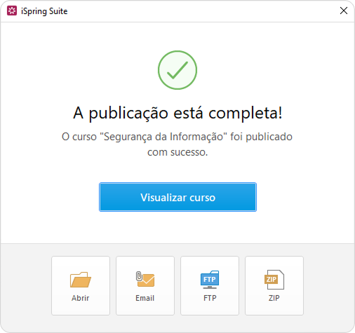 Publicar para o computador permite que você salve um curso em um drive local para distribuição subsequente. Publique o curso convertido no seu website, blog, ou na rede interna da sua organização.