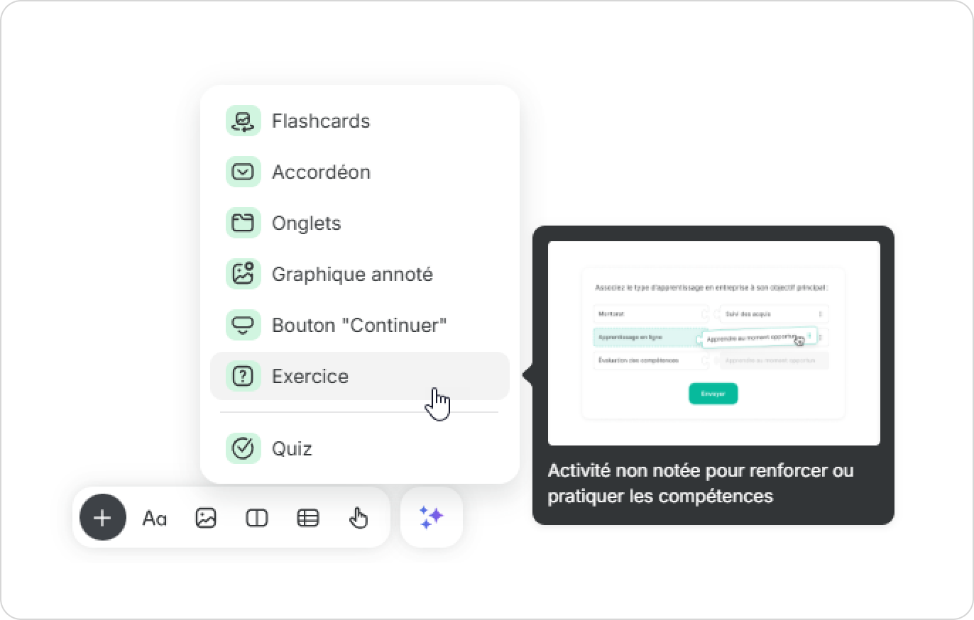 1. Dans la barre d'outils, accédez à Interactions et sélectionnez Exercice.