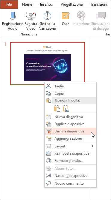 Esistono due modi per eliminare un quiz dalla presentazione: