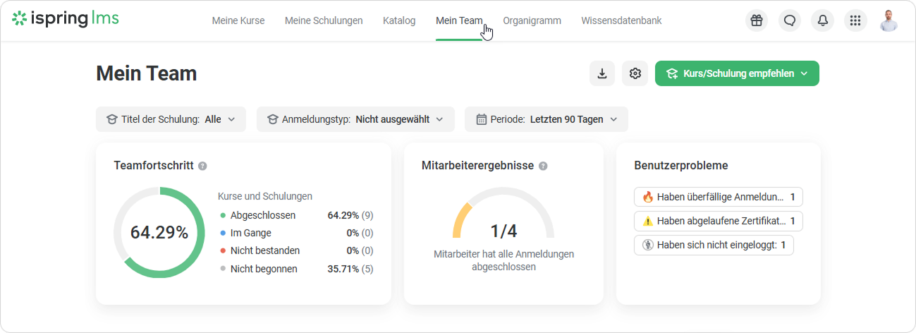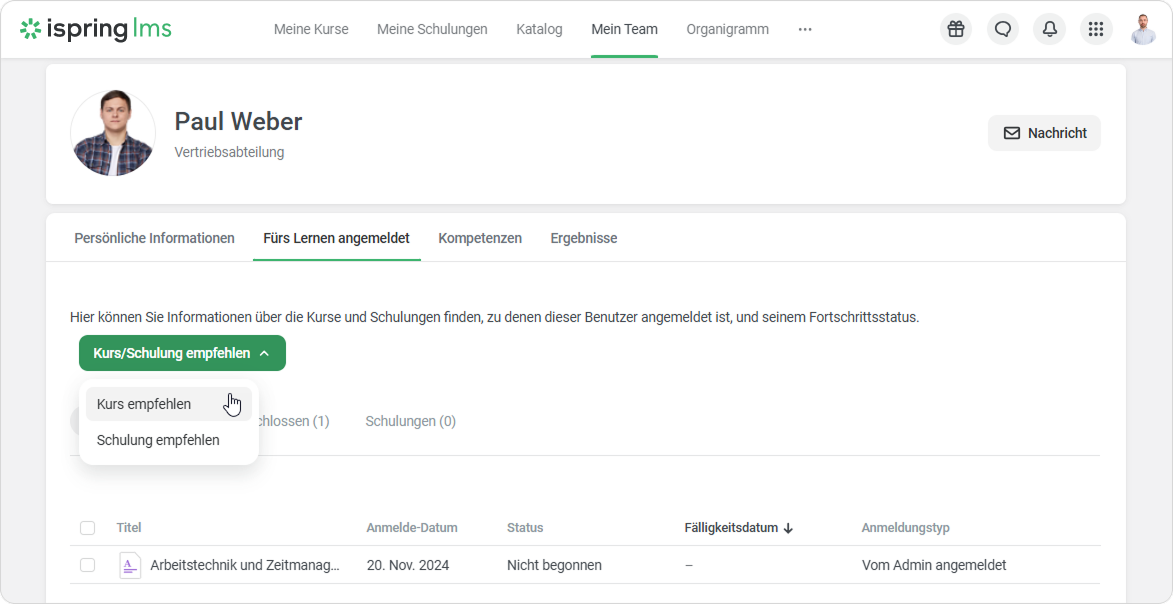 Großartig! Sie haben Kurse an Mitarbeiter empfohlen.