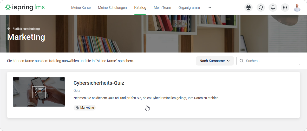 - Öffnen Sie den Abschnitt Katalog und wählen Sie einen Kurs oder eine Schulung aus.