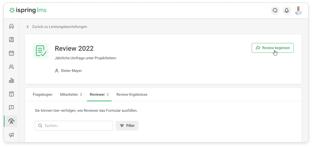 Erledigt! Der Fragebogen wird an alle Teilnehmer des Reviewers gesendet.