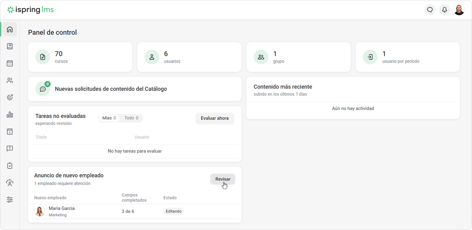 Los usuarios pueden recibir estas notificaciones solo con el plan (de pago) iSpring LMS Business.